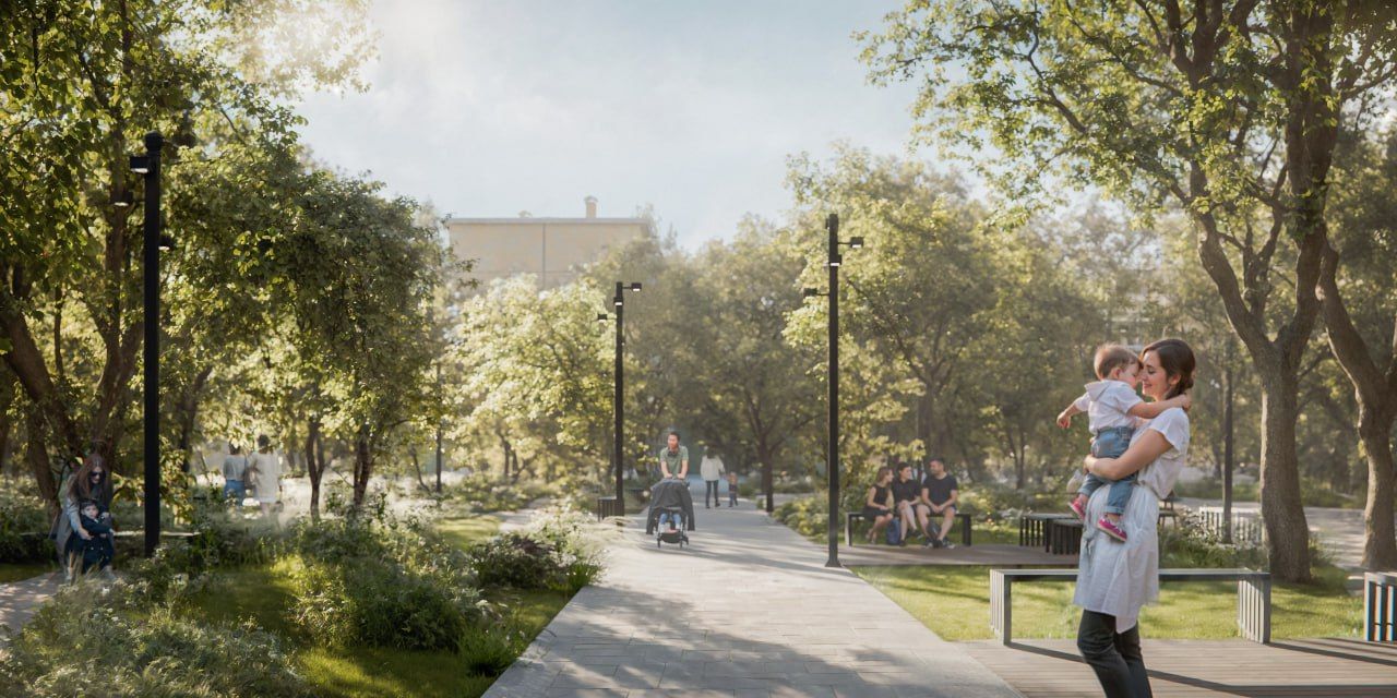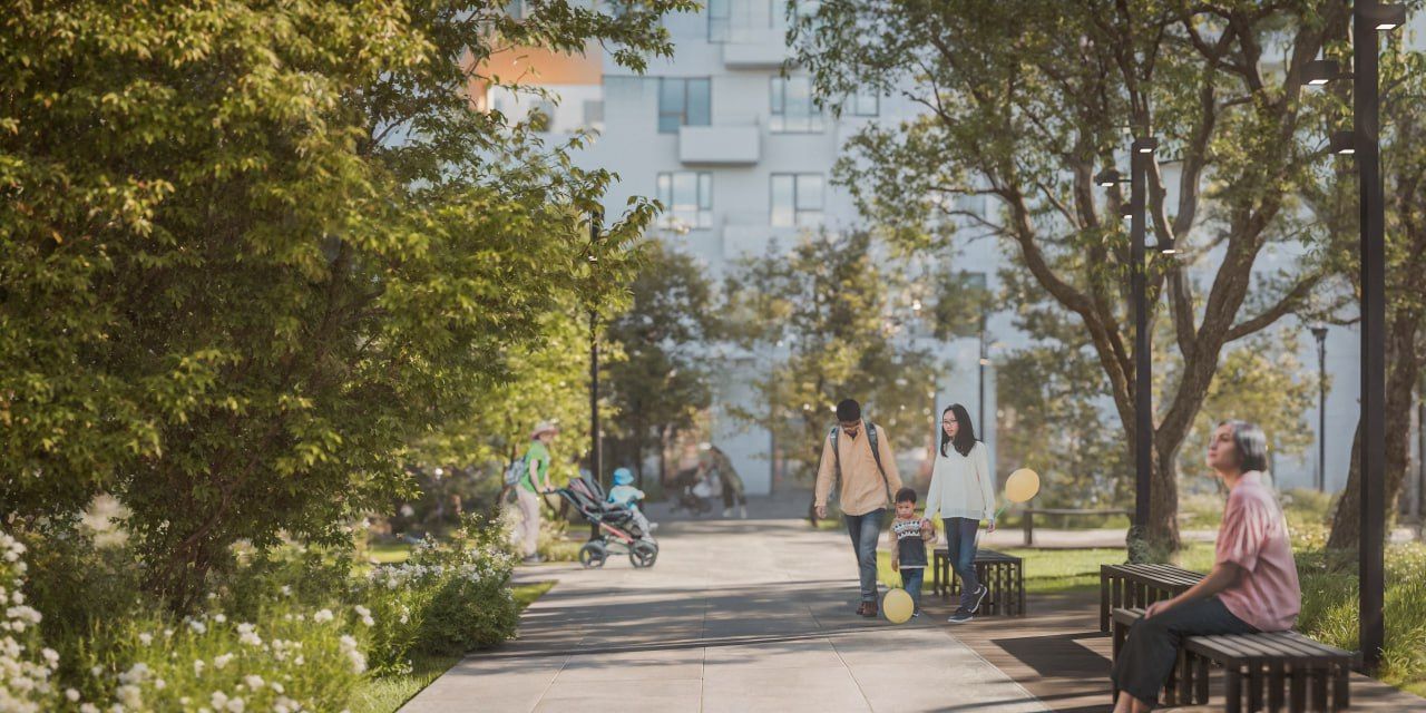 Утром вы выходите во внутренний двор, где нет машин. Днем можете сменить обстановку и подняться на общественную террасу. Вечером возвращаетесь домой через знакомый вход и понимаете, что весь день прошел внутри одного пространства, которое вы называете своим домом.